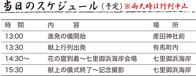 午後1時30分:産田神社前を出発〜午後2時30分:七里御浜海岸特設ステージ